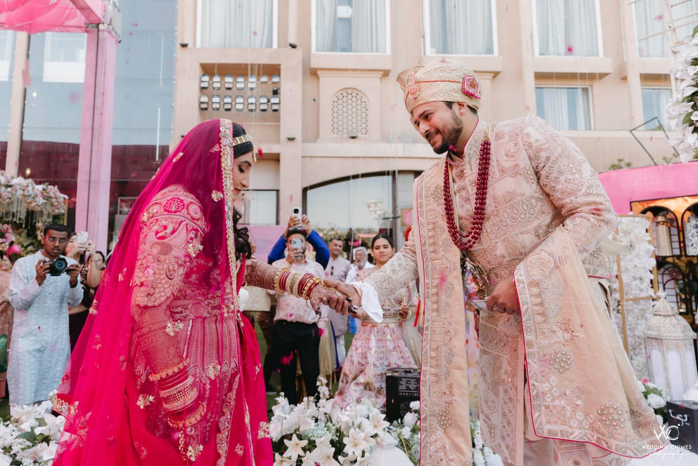 Beautiful wedding ceremony with traditional rituals and modern touches